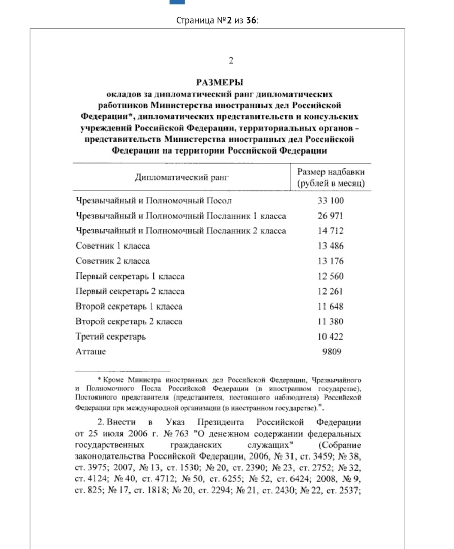 В вашей голове давно нет здравого смысла. Это не зарплата чиновников, а оклад за дипломатический ранг. О чем ясно и русским языком написано в документе. Увеличили эту надбавку на 10% в рамках ежегодной плановой индексации.