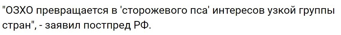 Досталось от Тарабрина и самой Организации по запрещению химического оружия. Он выразил мнение, что ОЗХО теряет свою объективность и независимость.