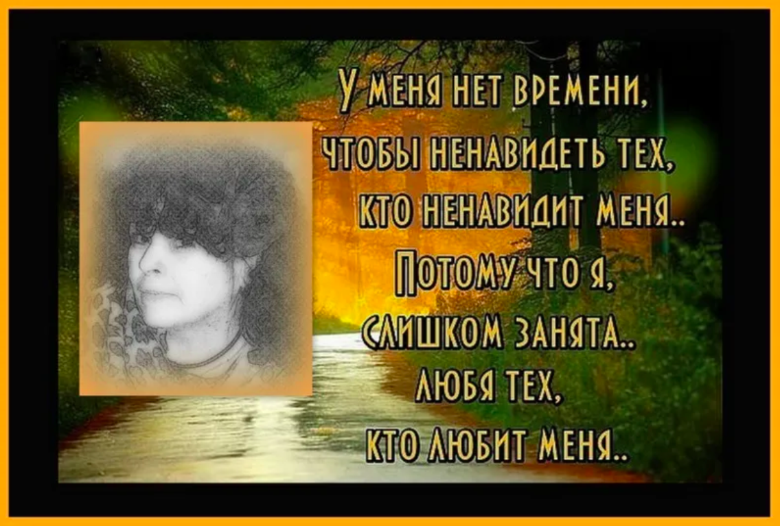 "У меня нет времени, чтобы ненавидеть тех, кто ненавидит меня... Потому что я слишком занята любя тех, кто любит меня!"
