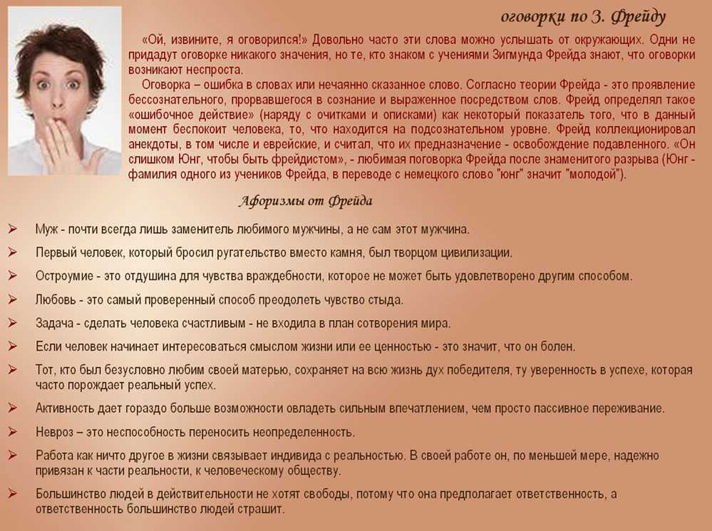 Понятно, что мы все ошибаемся, считаем оговорки чистой случайностью, а вот Зигмунд Фрейд так не считал. Он утверждал, что за самой незначительной оговоркой стоит огромный смысл, который не известен даже самому тому, кто оговорился.