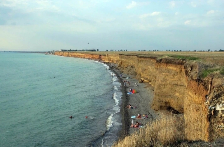 Переодевшись мы направились в сторону пляжа, так как хотели сразу же искупаться. Тут то я поняла, что ходить до пляжа придется по полю, по жаре, примерно 15 минут. Оказалось, что наши друзья выбрали жилье на краю Николаевки, при этом вдоль берега тянулись различные дома отдыха и турбазы, которые выходили прямо на пляж. Менять что-то было уже поздно.