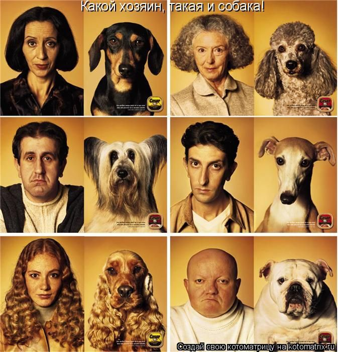 И изучая манеры человека, собака внешностью и манерами становиться очень похожа на своего хозяина.