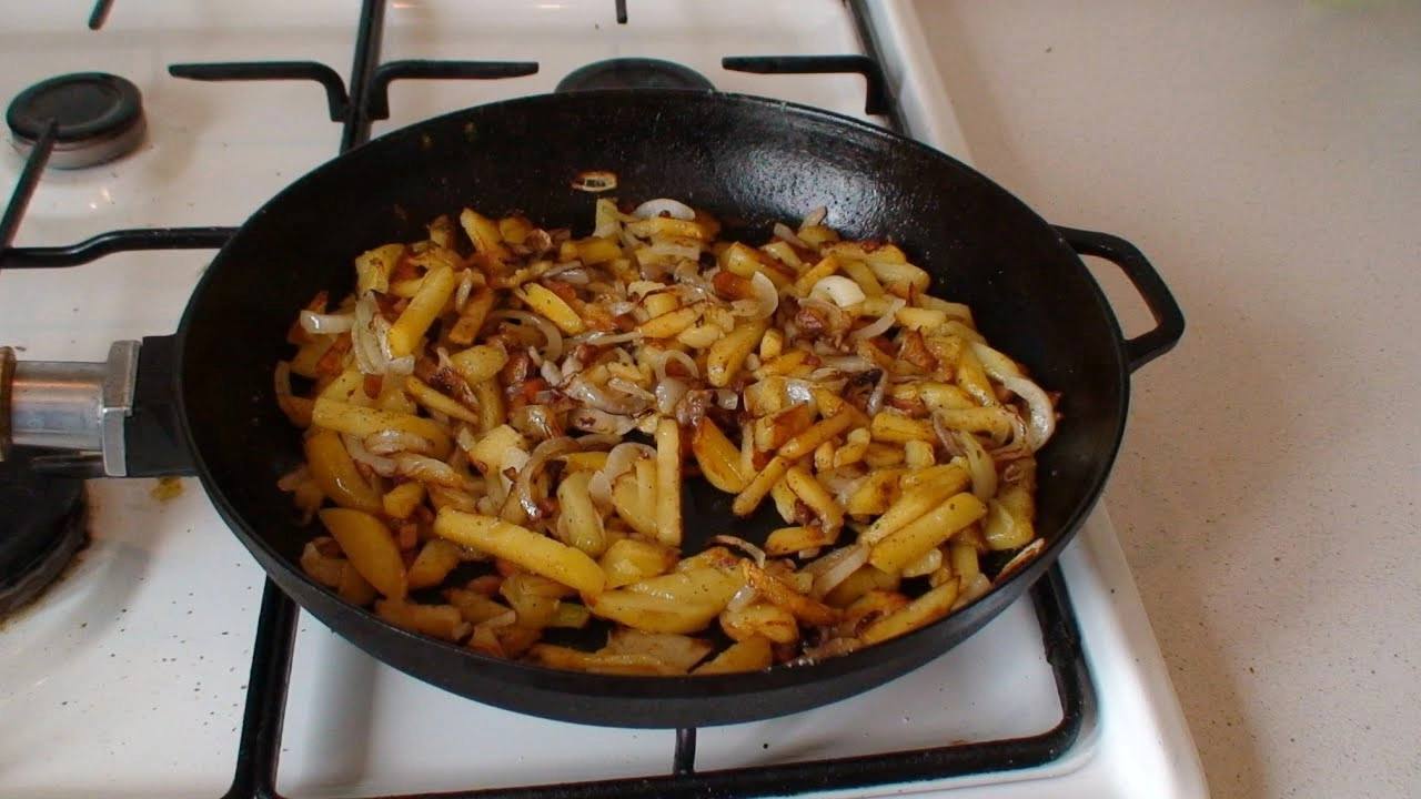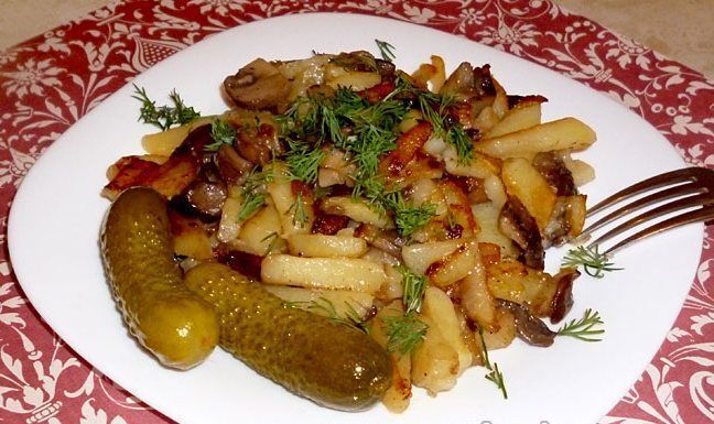 Я очень люблю жареную картошку, но никогда не ем со сковороды. Всегда приятнее и вкуснее пользоваться большой тарелкой, куда я обязательно кладу свежий огурчик.