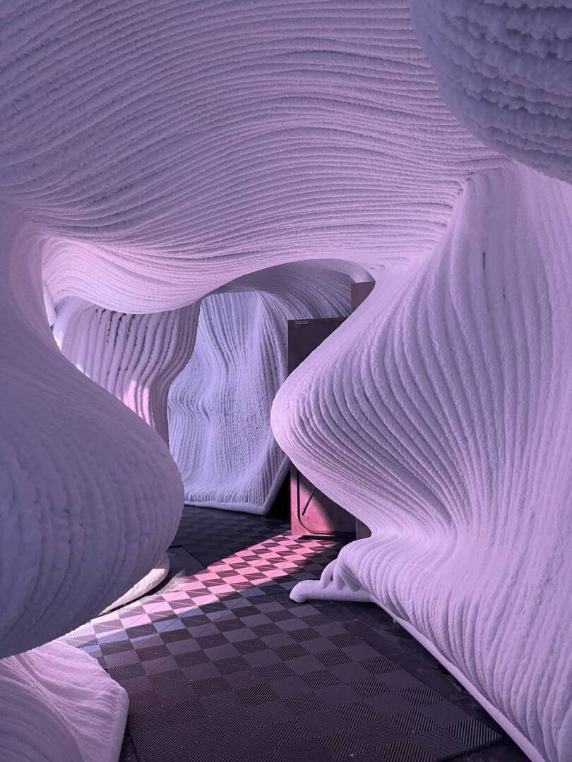 Более радикальное решение – отправиться в ледяную пещеру. В Зарядье есть пространственная инсталляция художника Александра Пономарева и архитектора Алексея Козыря. Здесь температура колеблется от -4 °C до -9 °C. Зрелищно и холодно!