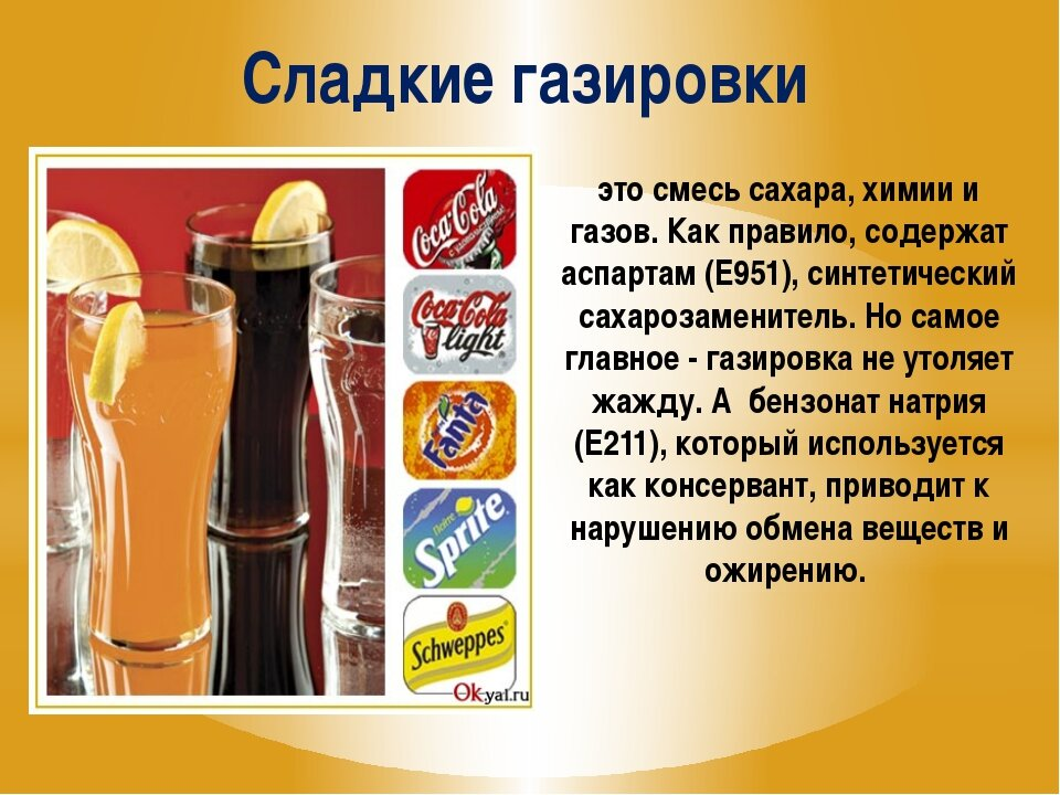 минеральная газированная и негазированная вода, соки, лимонад, кока-кола, пиво, квас, компот, кисель, кефир и другие кисломолочные продукты, чай, кофе, вино...