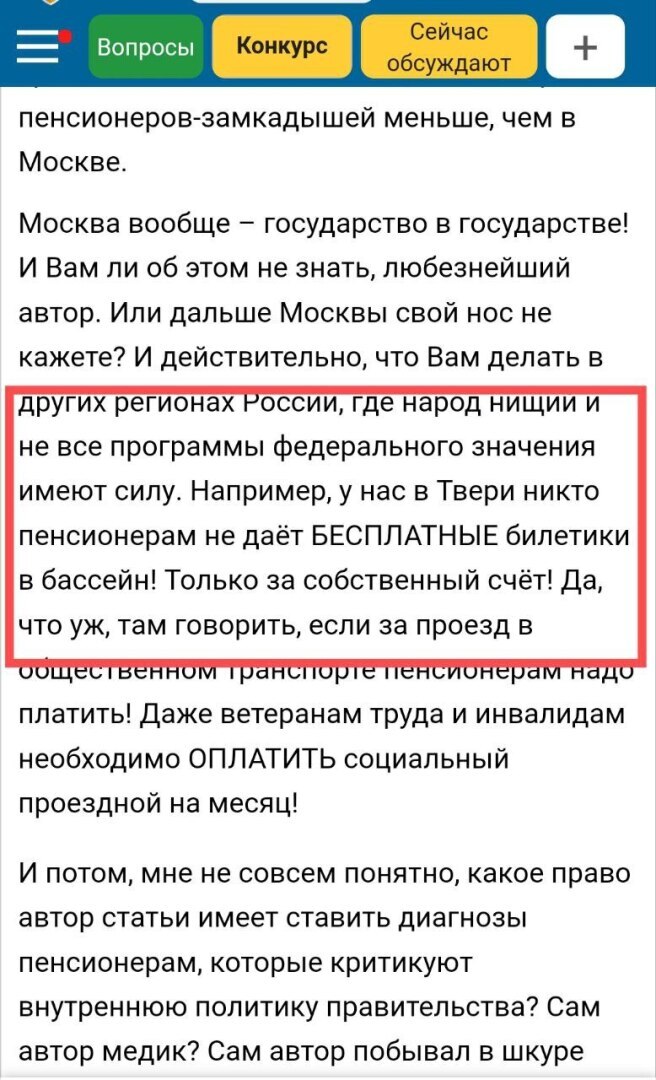Внимание❗️❗️ Лживая информация пользователя сайта 9111.ру из г.Тверь, в котором, как утверждает автор, нет бесплатной гос.программы для пенсионеров!