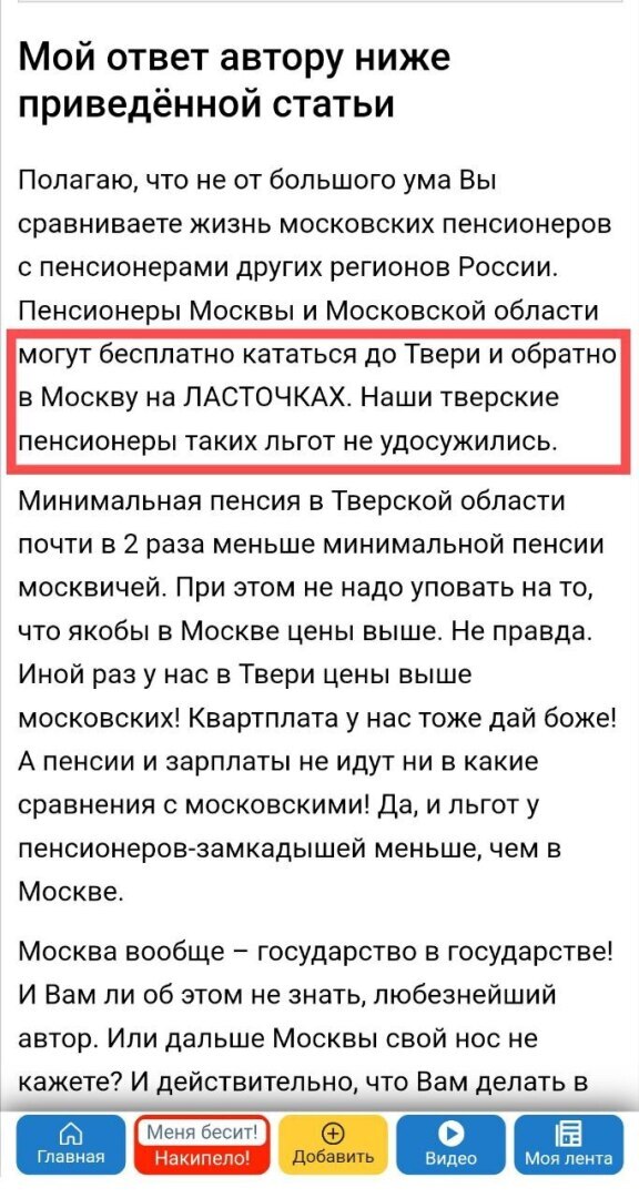 Пользователь из г. Тверь нагло врет другим читателям сайта, жалуясь, что в ее регионе никогда не было льгот. Выше текст ее лживой статьи.