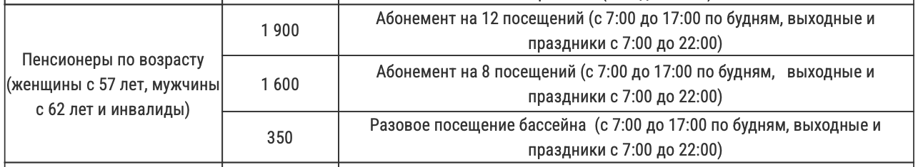 Однако бесплатного посещения бассейна для пенсионеров Твери нет. Посещение бассейна стоит денег! Есть лишь небольшая скидка.