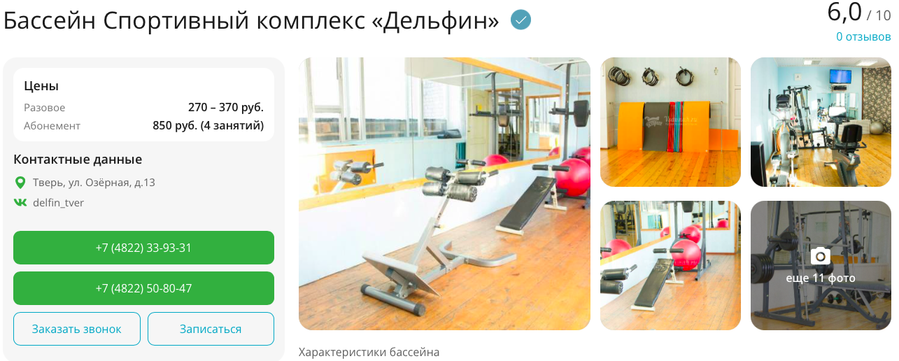 "Нет в Твери бассейна "Аквамарин". Он есть в Вышнем Волочке Тверской области. От Твери до