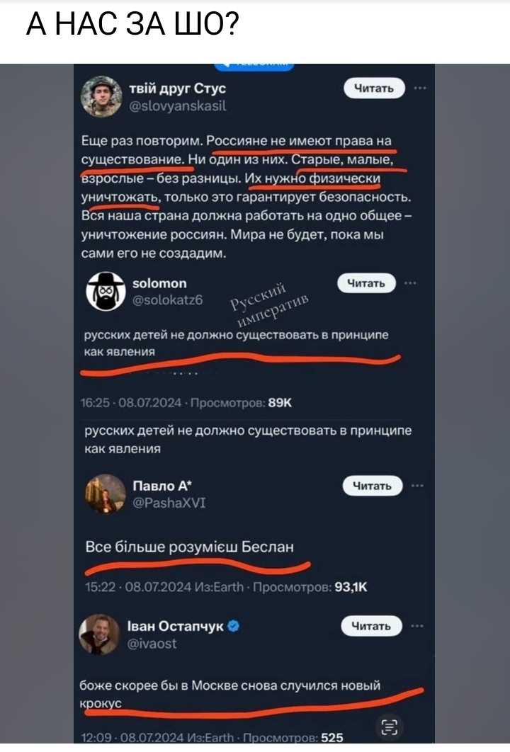 Ненависть я эту вижу в интернете каждый день 10 лет . Как с Украины так и с Запада. Они за 10 лет столько песен и стишков про ненависть к русским насочиняли, ужас.
