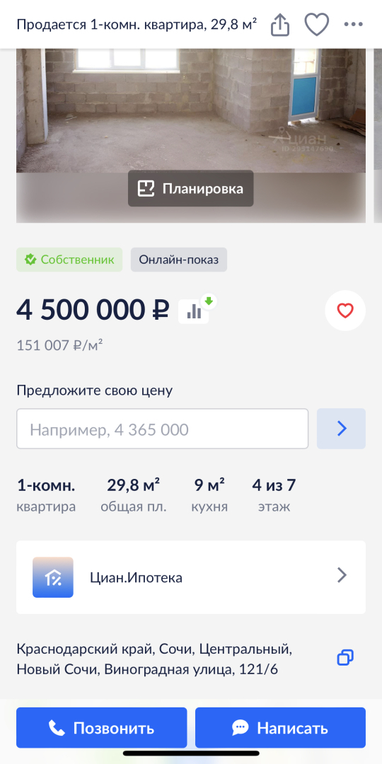 Циан обзор объявления Виноградная 121/6 незаконный дом ИЖС