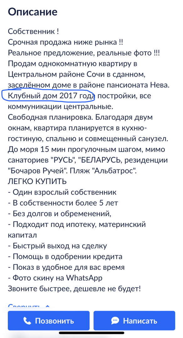 ❗️В описании объявления указывается клубный дом 2017 года❗️