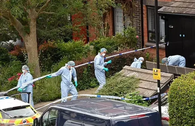 Судмедэкспертов в синих костюмах и масках можно было увидеть работающими за кордоном на месте преступления в Шепердс-Буш на западе Лондона в субботу утром.