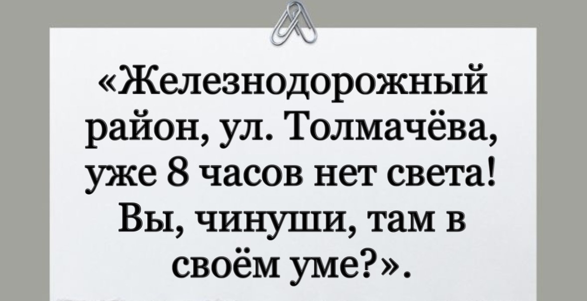 В местных пабликах власти просят потерпеть, помочь по мере сил. Можно пригласить погостить тех родственников, друзей, у кого свет дома отключен, а также экономить свет: перевести в Eco-режим сплит-системы, отключить неиспользуемое оборудование.