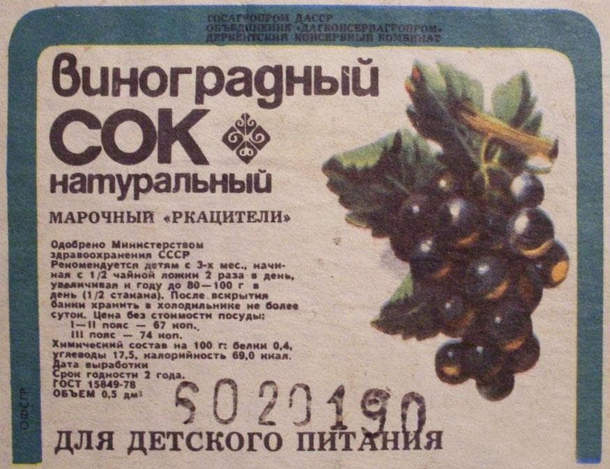 Кто из живших в СССР, не помнит трёх литровые неказистые по сравнению с нынешними ярко украшенными, модными, сделанные по всем правилам маркетинга тетрапаками, стеклянные банки. Которые порой были с покрытой ржавчинной крышками. Но зато какой был вкусный сок внутри, сделанный со строгим соблюдением всех ГОСТОв, без добавлений всяких «Ешек», ароматизаторов, красителей и консервантов. Также соки продавали на разлив из стеклянных колб, которые стояли как в Гастрономах, так и пунктах выездной торговли на улицах.