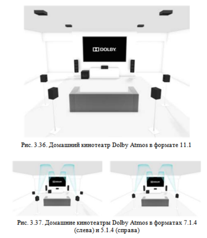 На рис. 3.37 показаны наиболее распространенные схемы расположения громкоговорителей в системе Dolby Atmos для домашнего кинотеатра.