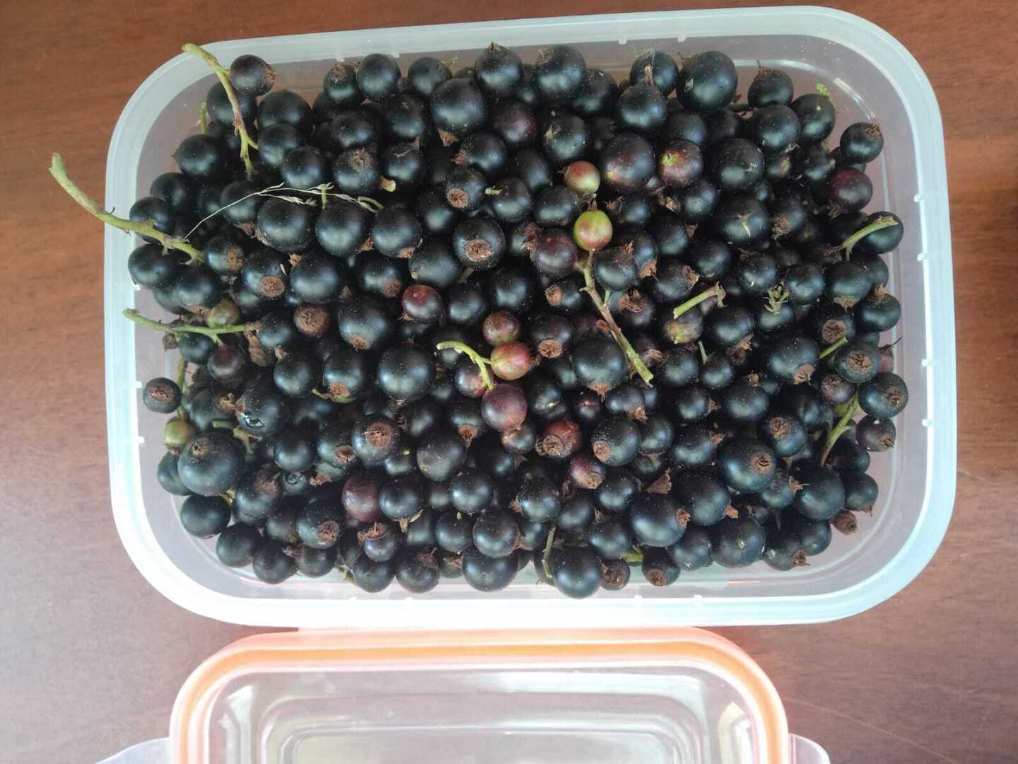 Чёрную смородину тоже собрали в контейнеры и пока положили в холодильник. Отвезём через день ( всё таки мы уезжаем на следующей неделе отдыхать, поэтому не задержимся на даче).