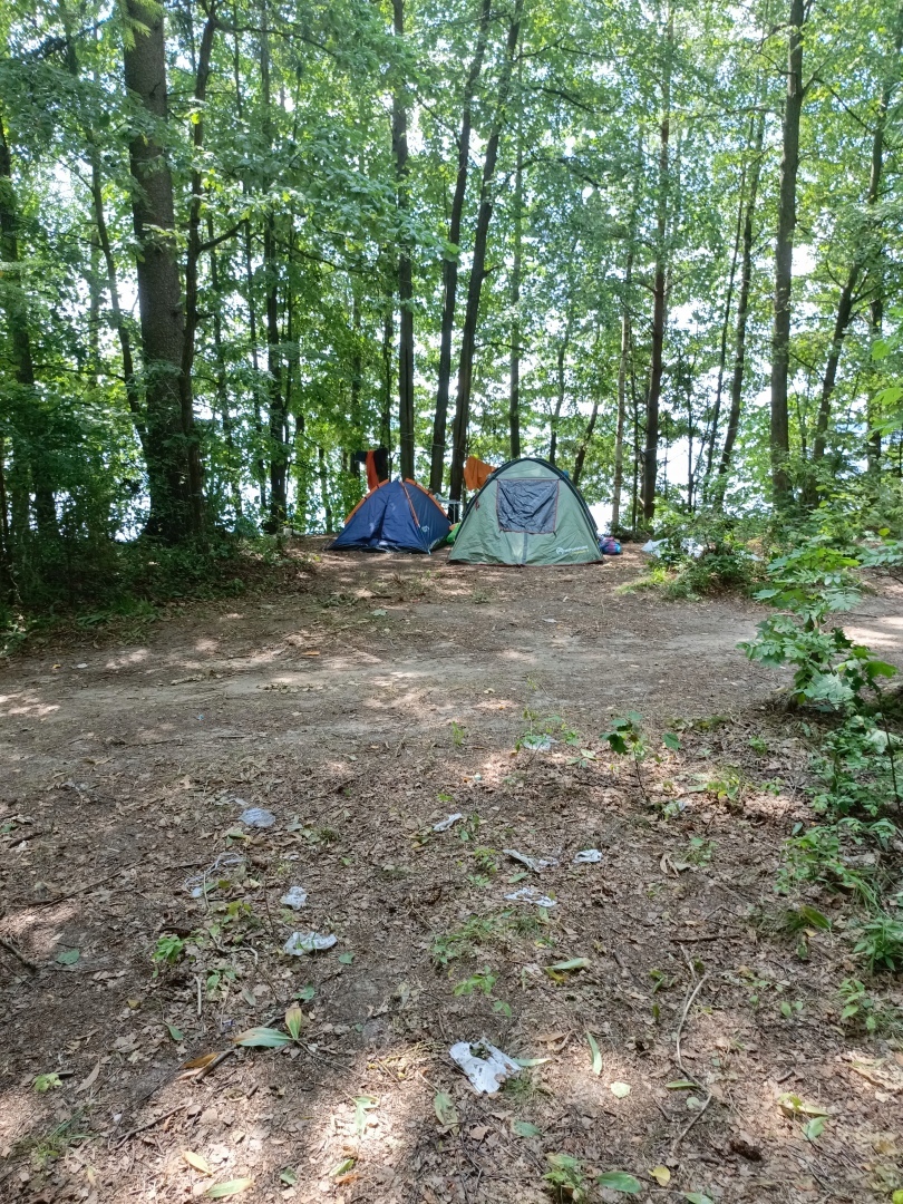 По всему лесу вблизи берега, валялись высохшие салфетки, которые сами понимаете что прикрывали. Это было ужасно, так и думаешь, как бы не встать во что-нибудь нехорошее. Ребенок, увидев палатки и множество людей, не захотел купаться, и мы пошли искать менее многолюдное место.