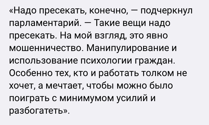 "Депутат также подметил одну особенность игры, заключающуюся в выполнении заданий, за которые дают виртуальные монеты - просмотр роликов на Ютубе, он переживает за огромную динамику просмотров, называя данный факт психозом."