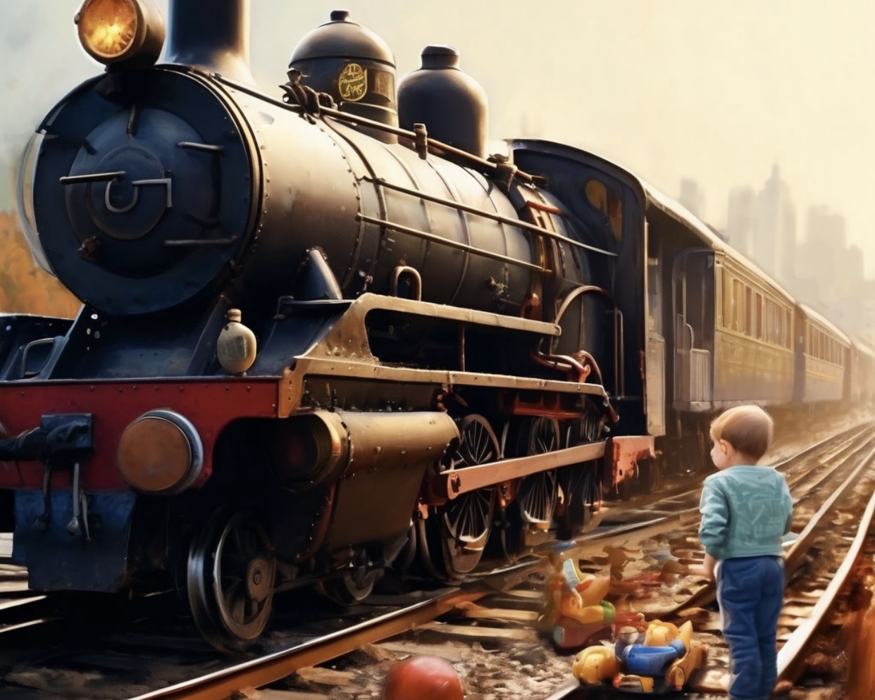 Жил-был маленький паровозик по имени Паник. Он был непослушным и всегда разбрасывал игрушки. А убирать не хотел. Однажды паровозик потерял свой гудок, но никто не хотел помогать искать. Взрослые поровозы только и говорили, что нечего разбрасывать вещи.