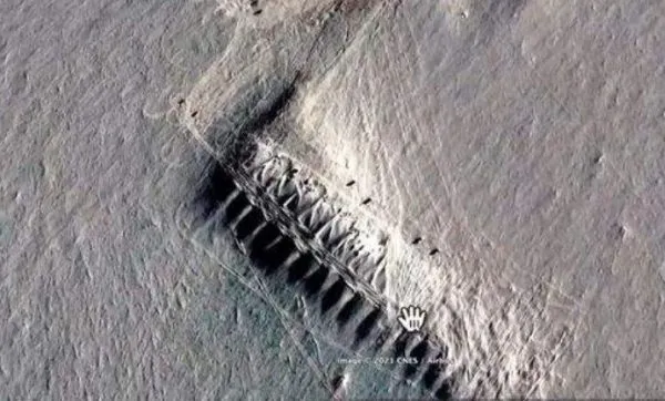 Таинственный объект, который на спутниковых фотографиях можно увидеть в виде нескольких больших хребтов на снегу, по-видимому, стал видимым уже несколько десятилетий назад.