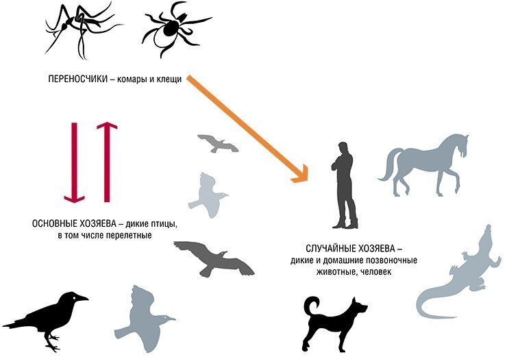 Эти комары переносят вирус от птиц к человеку, а также другим млекопитающим.