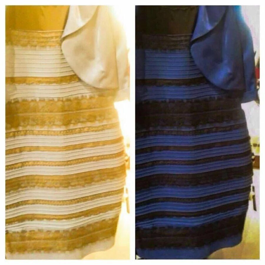 Сине-чёрное платье — интернет-феномен и мем, возникший после того, как 26 февраля 2015 года в социальной сети Tumblr была опубликована фотография кружевного платья дизайнера Roman Originals. Сразу развязался горячий спор относительно того, какого цвета платье на фотографии: голубое с чёрными полосками или белое с золотыми. Впоследствии было выяснено, что платье, показанное на фотографии, на самом деле синего и чёрного цветов. Феноменом заинтересовались нейробиологи, установившие, что причина заключается в оптической иллюзии из-за неправильной светоотдачи, отчасти из-за того, что фотография была обработана. После того, как фотография платья разошлась по социальным сетям, обросла хештегами, положила начало новому интернет-мему, и набрала, в итоге, более 37 миллионов просмотров, феноменом заинтересовались ученые. Бевил Конуэй и Джей Нэйтц предположили, что в этом случае речь идет об оптической ловушке, вызванной хроматической адаптацией или цветопостоянством. Цветопостоянство – это особенность восприятия цвета, которая заключается в том, что мы видим цвет одинаковым при любом освещении. Например, зеленый лист днем, при белом освещении, и вечером, при красном закате, выглядит по-разному. Но наш глаз (точнее, мозг) видит лист зеленым и днем, и вечером. Эта особенность восприятия выработалась в процессе эволюции для того, чтобы мы могли лучше ориентироваться в пространстве, не открывая для себя каждый раз при новом освещении мир заново. Нейробиолог из Нью-Йоркского университета Паскаль Уоллиш спустя два года опубликовал результаты своего исследования по поводу «феномена полосатого платья». Он опросил (по интернету, разумеется) более 13 тысяч человек о цвете платья. При этом он просил ответить и на другие вопросы: о возрасте и поле интервьюируемого, о его дневном цикле (исследователя интересовало, когда испытуемый наиболее продуктивно работает – утром или вечером), а также о том, как именно видит интервьюируемый освещение на снимке – в тени платье или на свету? Все опрошенные предсказуемо разделились на две большие группы: одни видели платье сине-черным, другие – бело-золотым. Нашлись при этом, и такие, кто видел платье то в одной цветовой гамме, то в другой. Пол и возраст испытуемых никакого значения не имел. А вот дневной цикл оказался очень важным фактором. Как известно, люди делятся на «жаворонков» — тех, кто привык вставать и ложиться рано, и при этом наиболее продуктивен в светлые часы, и на «сов», которые хорошо себя чувствуют, вставая и ложась поздно, и у которых наиболее продуктивным временем является вечер и ночь. Так вот, «жаворонки» в подавляющем большинстве видели бело-золотое платье, а «совы» — сине-черное.