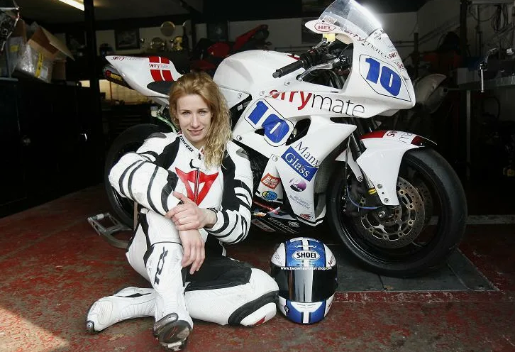 А реальная спортсменка-мотогонщица - это британка Дженни Тинмут, "Леди-Райдер".