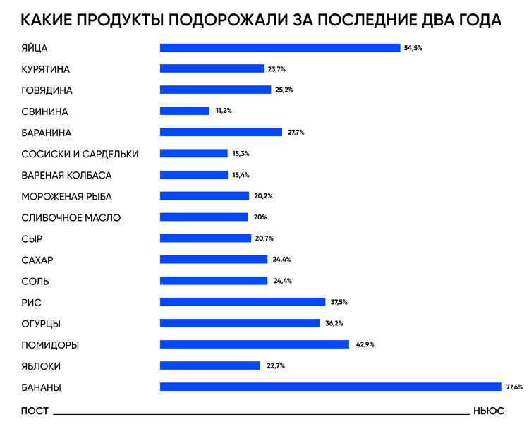 Статья "Яйца, бананы и капуста: что сильнее всего подорожало в России за два года "