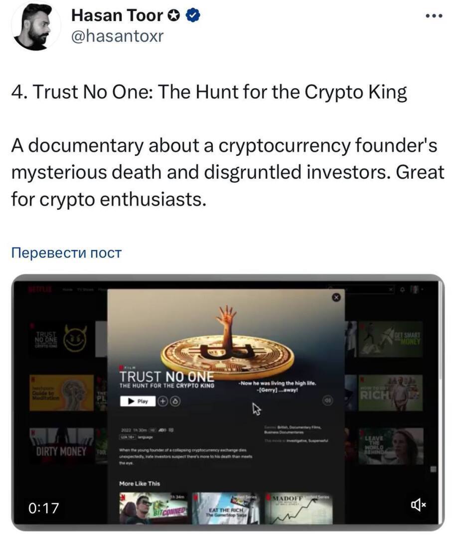 🕵️♀️ "Никому не верьте: Охота за крипто-королем": Трагическая история смерти основателя криптовалютной биржи QuadrigaCX. После его кончины пропали ключи шифрования и деньги тысяч инвесторов.