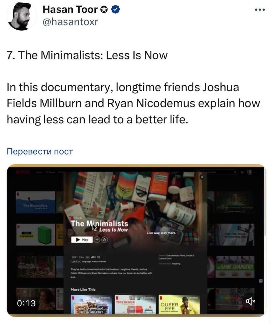 🧘♀️ "Минималисты: Меньше - это больше": Фильм заставит вас переосмыслить свое отношение к вещам и жизни в целом.