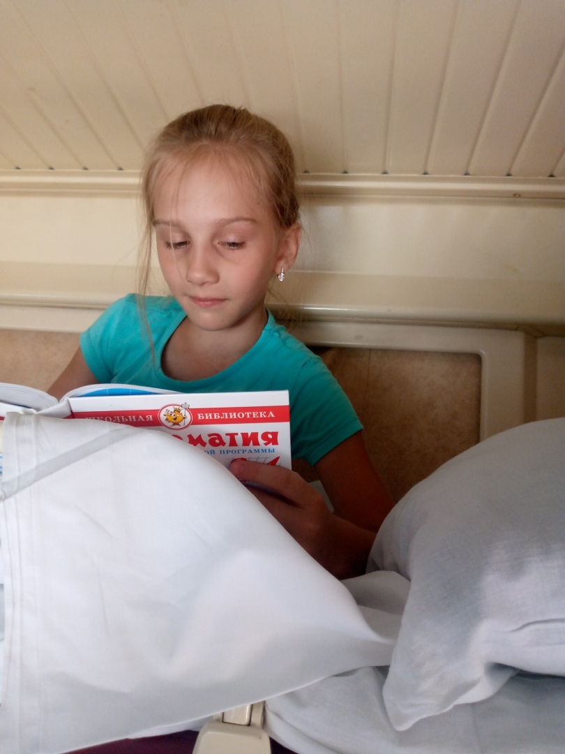 Дочка сразу обустроила себе верхнюю полку и вооружившись хрестоматией стала впитывать в себя мудрость литературы, а я смотрела в окошко и пила ароматный кофе, уже в эту минуту чувствовался восторг приближающегося отпуска.