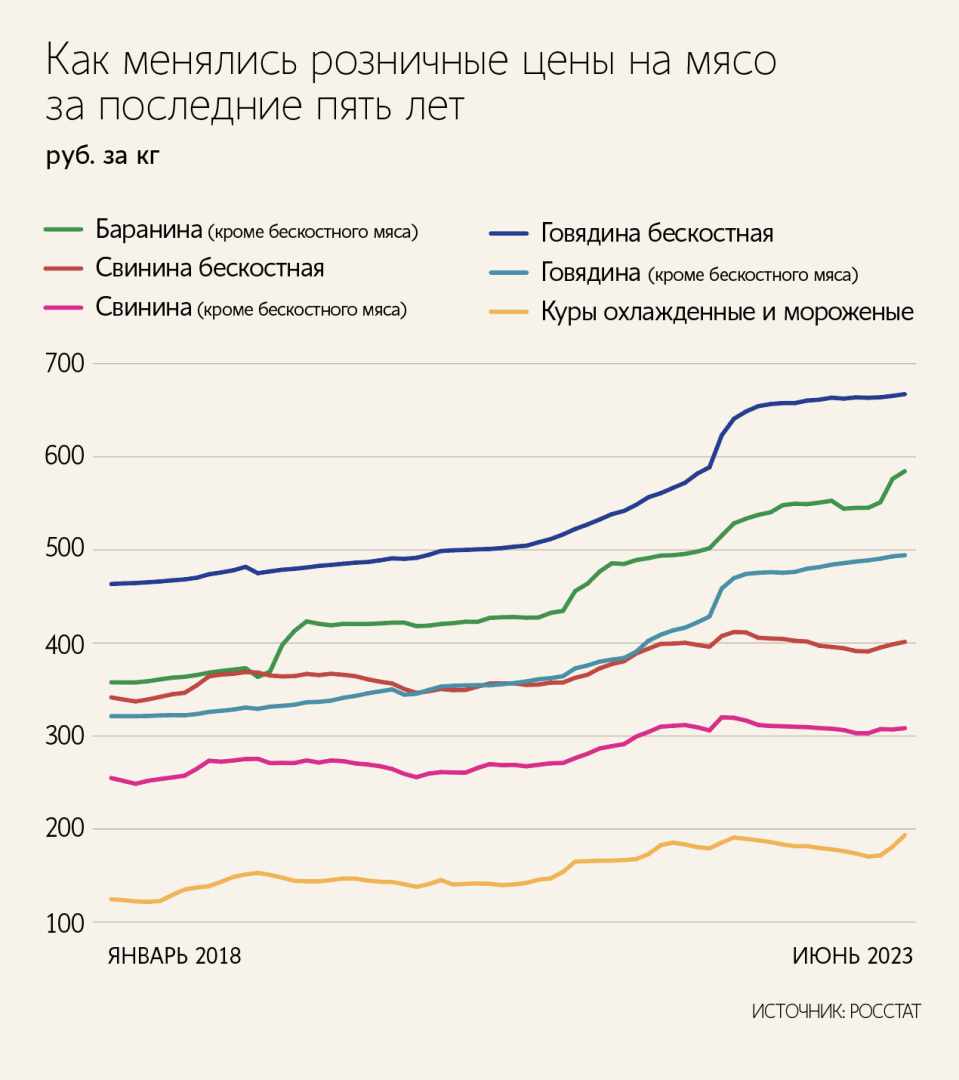 В 2023 году производство достигло 4,4 млн тонн в убойном весе, что на 5% больше, чем годом ранее. При этом экспорт составляет всего около 6% от производства. Таким образом, поставки в Китай в объеме 100 000–200 000 тонн не окажут значительного влияния на внутреннее потребление в России.