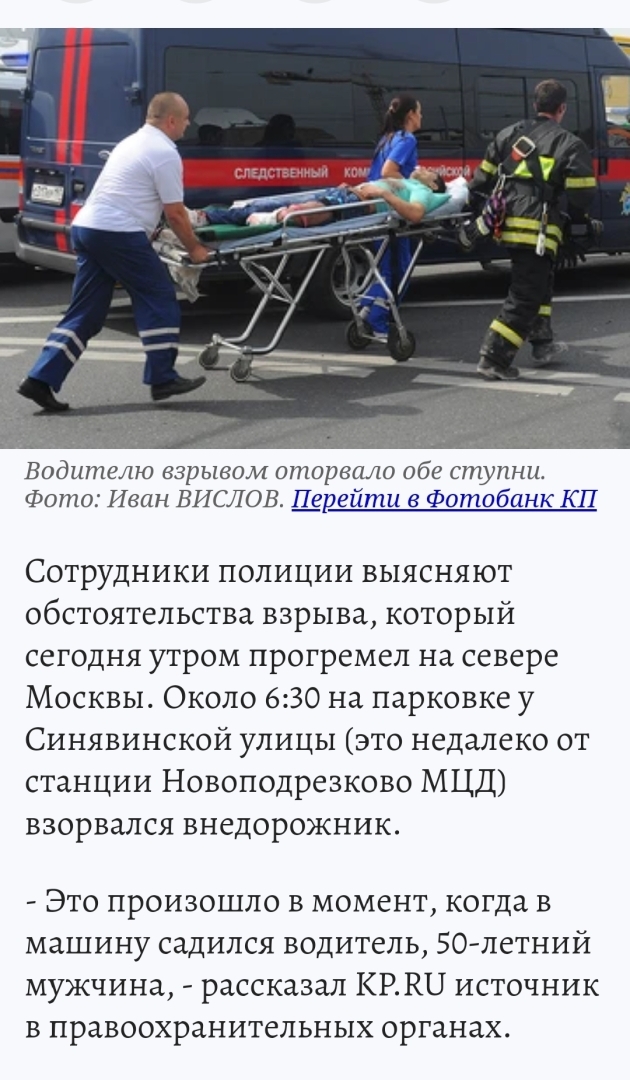 Пострадавший в результате подрыва машины на севере столицы - офицер Минобороны. Предварительно, он служил в ГРУ и отвечал за средства связи в своей части. По информации СМИ, его имя - Андрей Торгашов.