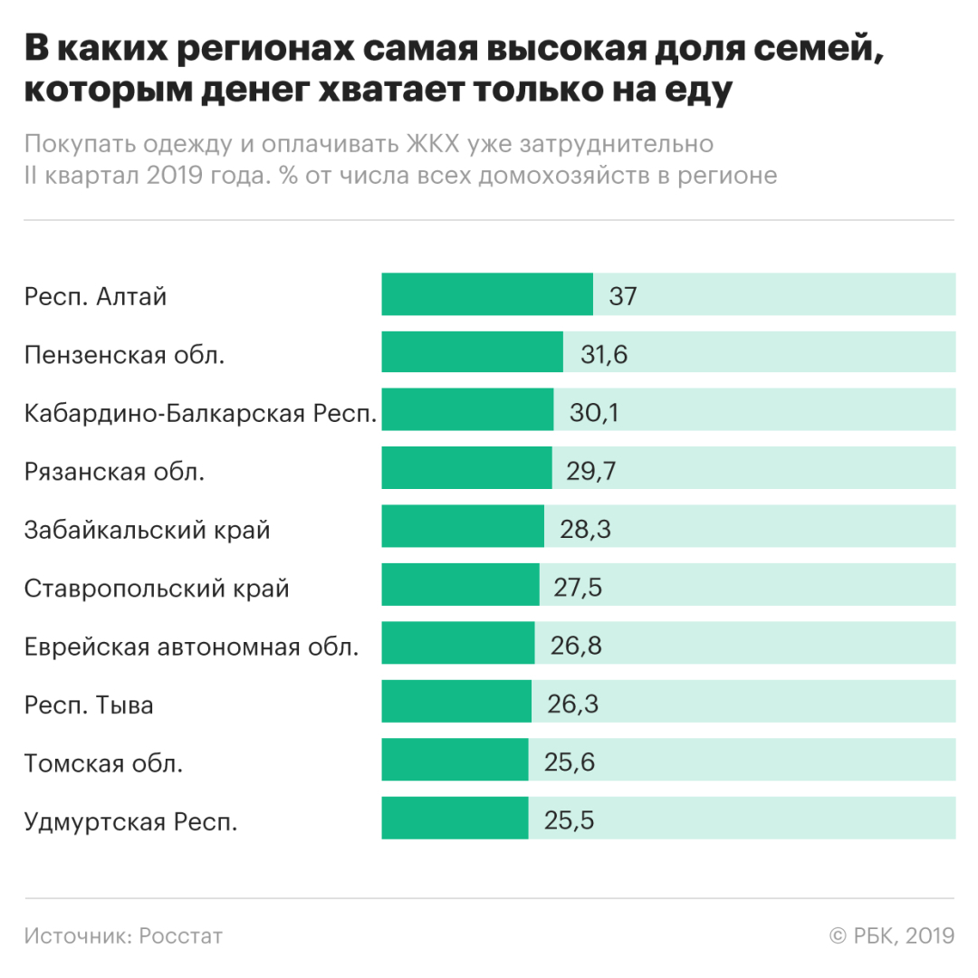 А в 2019 году в СМИ тот же Росстат обнародовал цифры российских семей, чьих финансовых ресурсов хватает только на покупку еды и одежды.