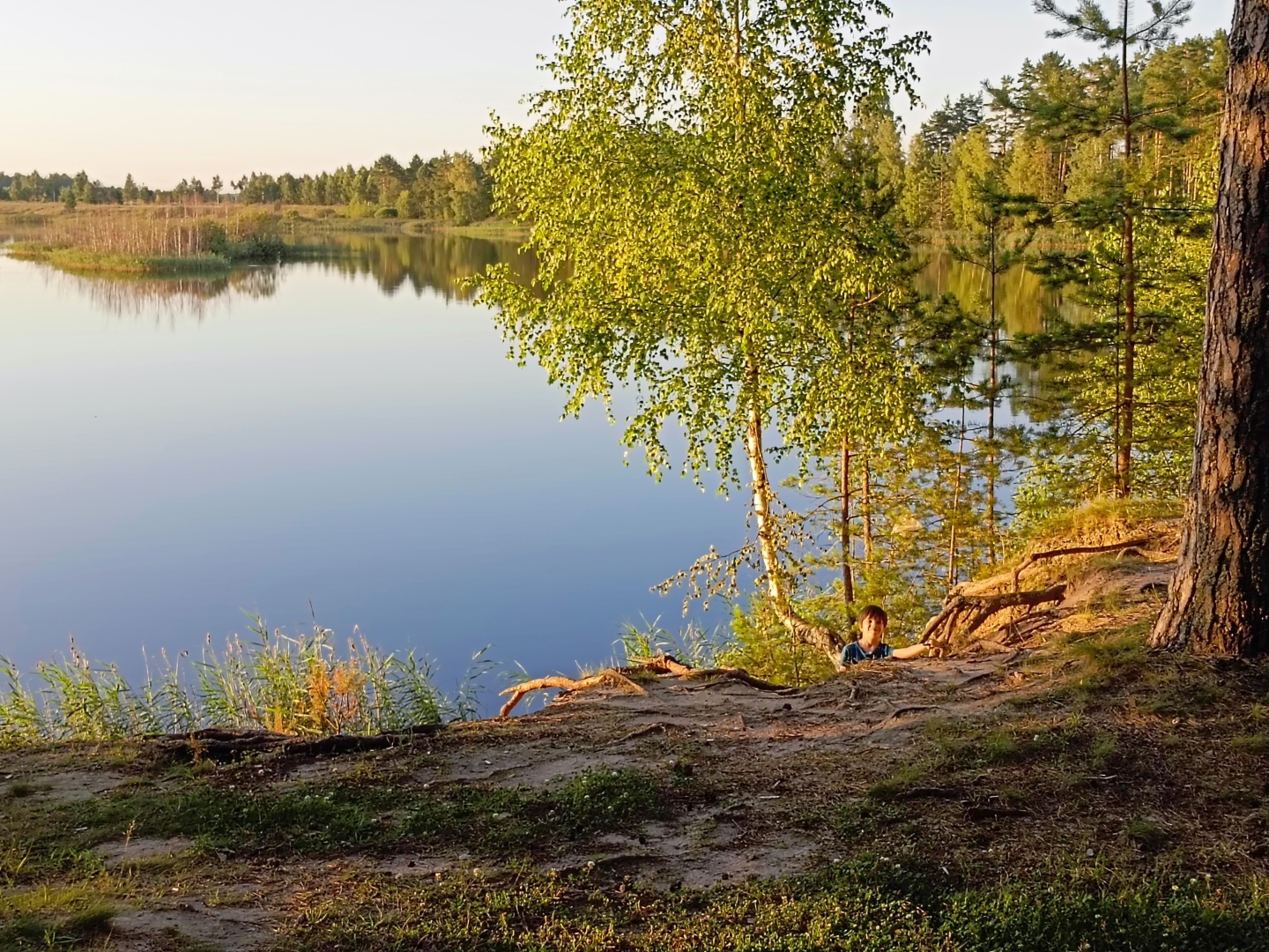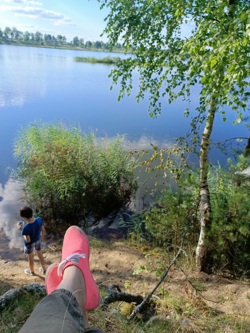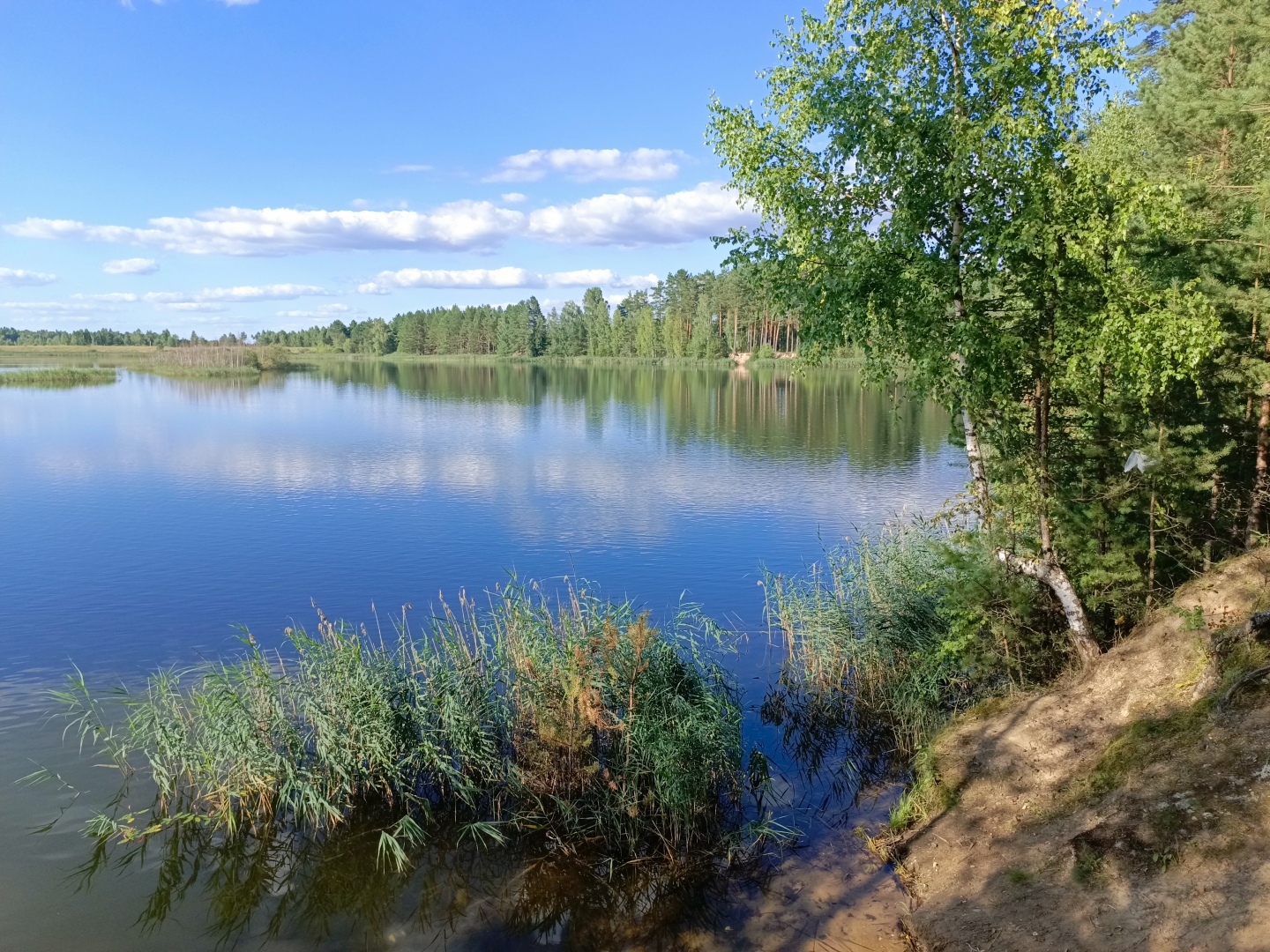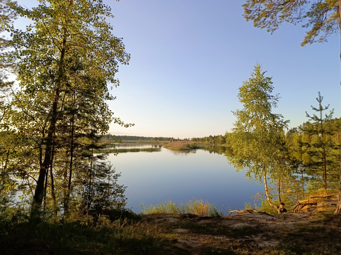 Мы были в восторге! Озеро оказалось большим, расположилось прямо в сосновом бору. Воздух был наполнен запахом сосен, дышалось легко и приятно. Виды завораживали.