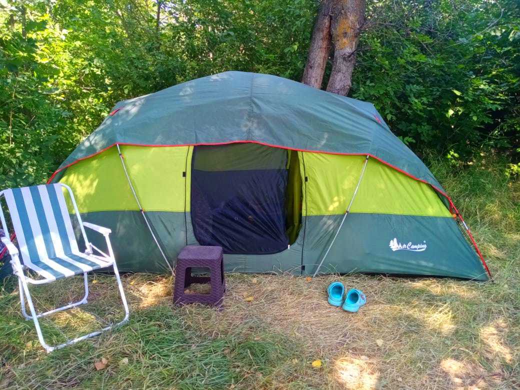 Спали в палатках. Муж этим летом предложил купить новую взамен старой, и 2 надувных двуспальных матраса. Так что проверили и палатку на прочность, купленную за 7500 р. (со скидкой) на Wildberries, и матрасы. Всё оказалось отличным и качественным!