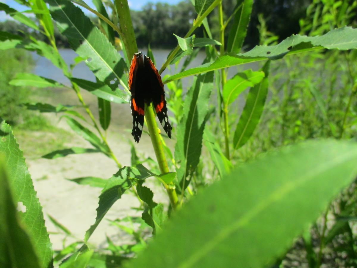 У берега в траве много кузнечиков, у самой воды летают стрекозы с переливающимися крылышками и порхают бабочки. Удалось сделать пару фото красивой бабочки с забавным названием Адмирал. И такие, оказывается, водятся на берегах Хопра.