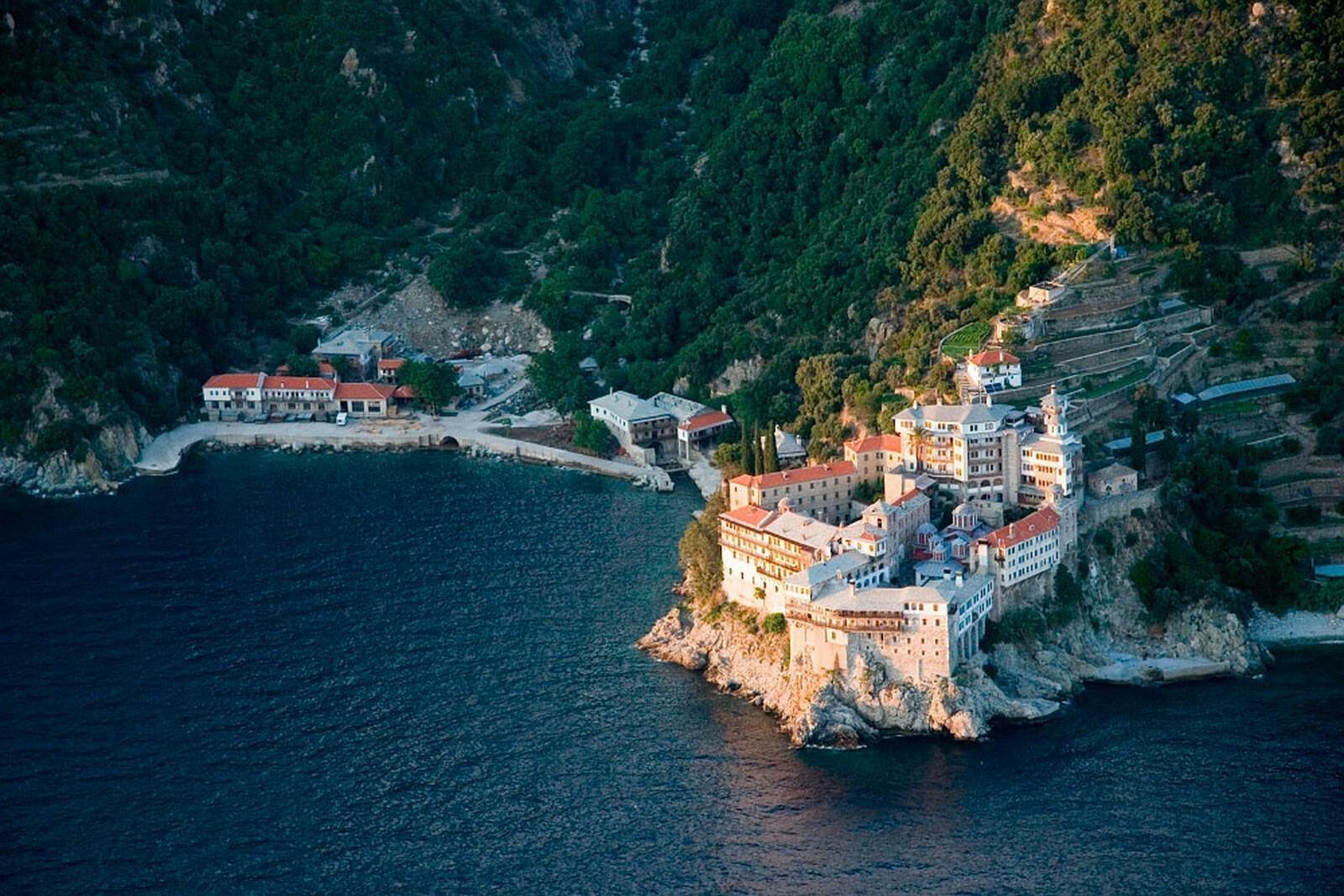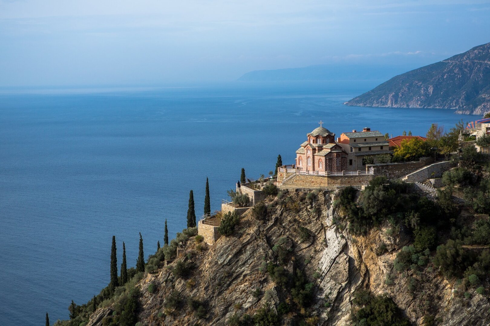 Святая гора Афон расположена на полуострове Халкидики на северо-востоке Греции. С трех сторон его омывают воды Эгейского моря. Высота горы – 2033 м.