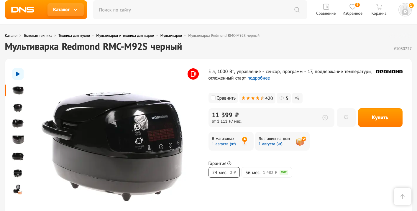 Купили умную мультиварку REDMOND RMC-M92S: 17 программ, антипригарная чаша объёмом 5 литров, мощностью 1050 Вт за 7 612 рублей.