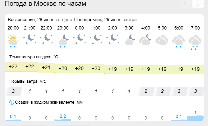 Впервые за сезон температура понизится до +20 °С. Дождь будет идти интенсивно, до 7 литров воды на квадратный метр.