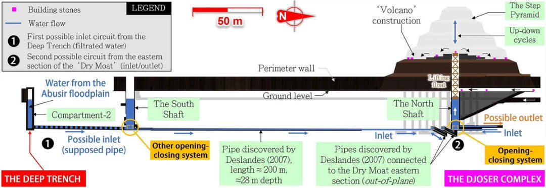 Недавнее исследование проанализировало ступенчатую пирамиду, воздвигнутую фараоном Третьей династии Джосером, и обнаружило сложную систему управления водными ресурсами, которая включает в себя гидравлический лифт в центре древнего сооружения.