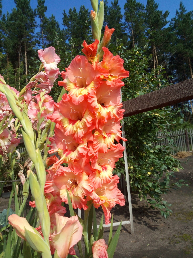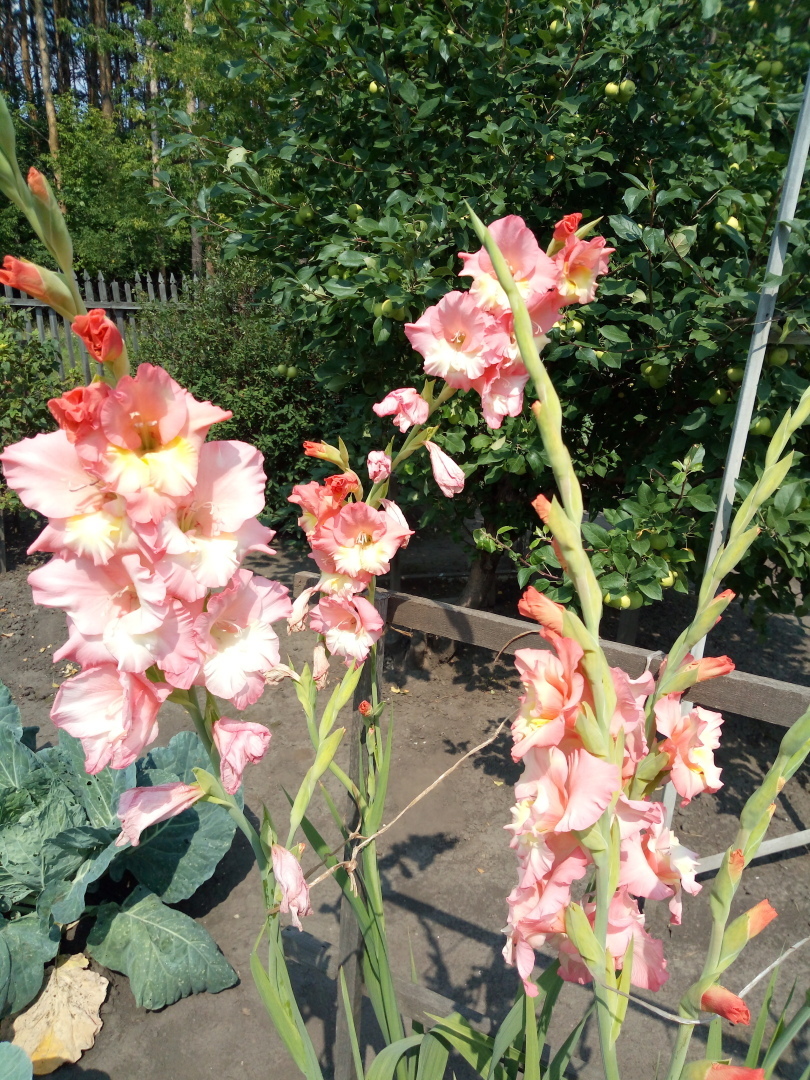 У нас гладиолусы ещё не цветут - сказывается поздняя весна и жара в июле. Фото с прошлого года.