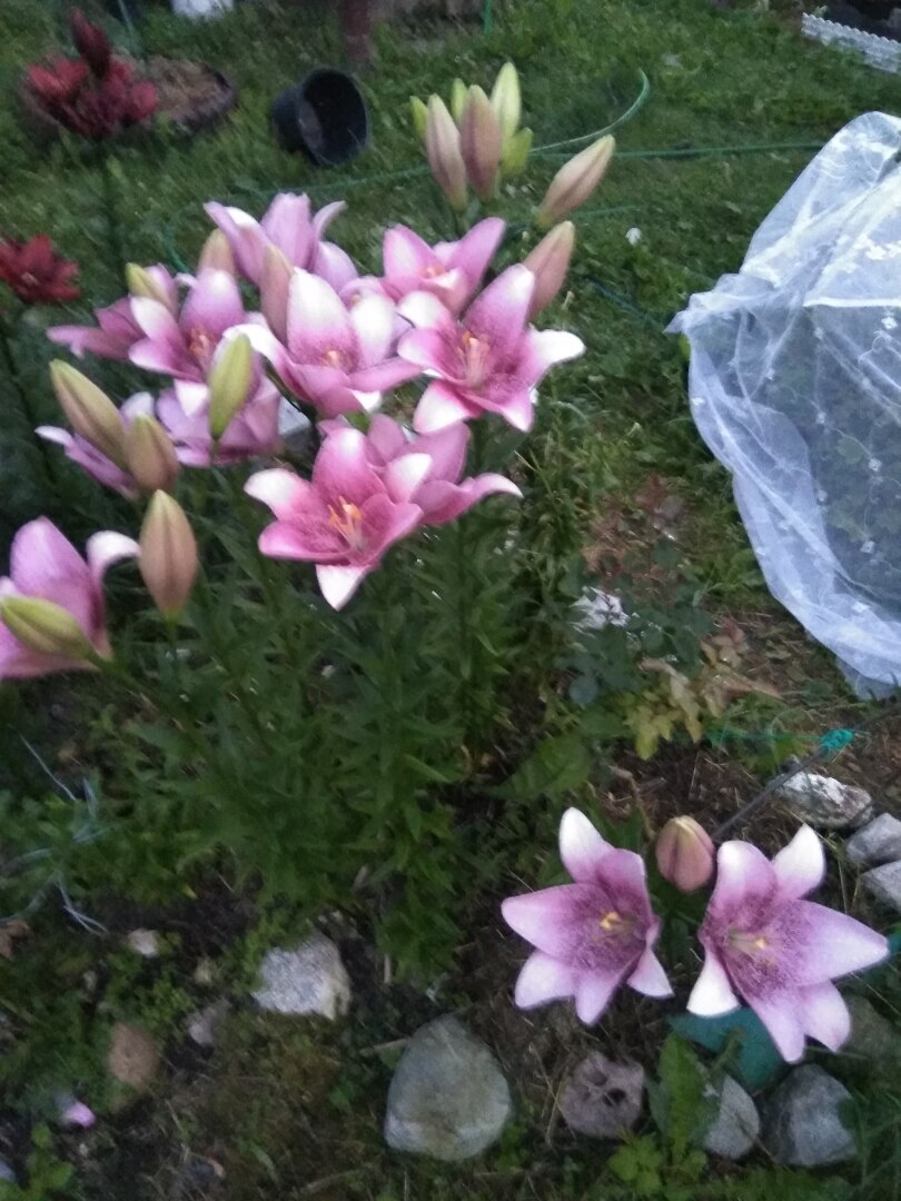Луковицы, купленные в садовом магазине, посадила все вместе в одном месте, а луковицы из магазина "Победа" – кучкой, через розу. Поливала и ухаживала за всеми цветами одинаково. Взошли луковицы дружно в обоих местах и росли одинаково все лето.