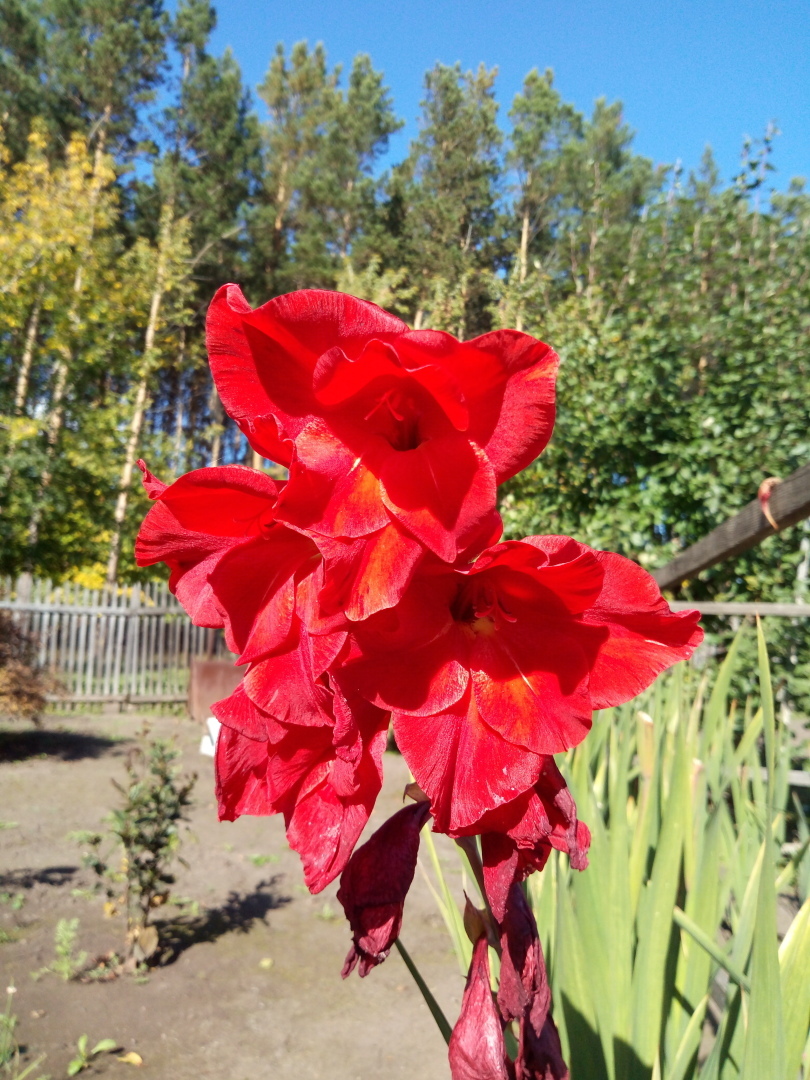 Гладиолус у меня зацвел в августе красным цветом, тогда моей радости и восторгу не было предела!