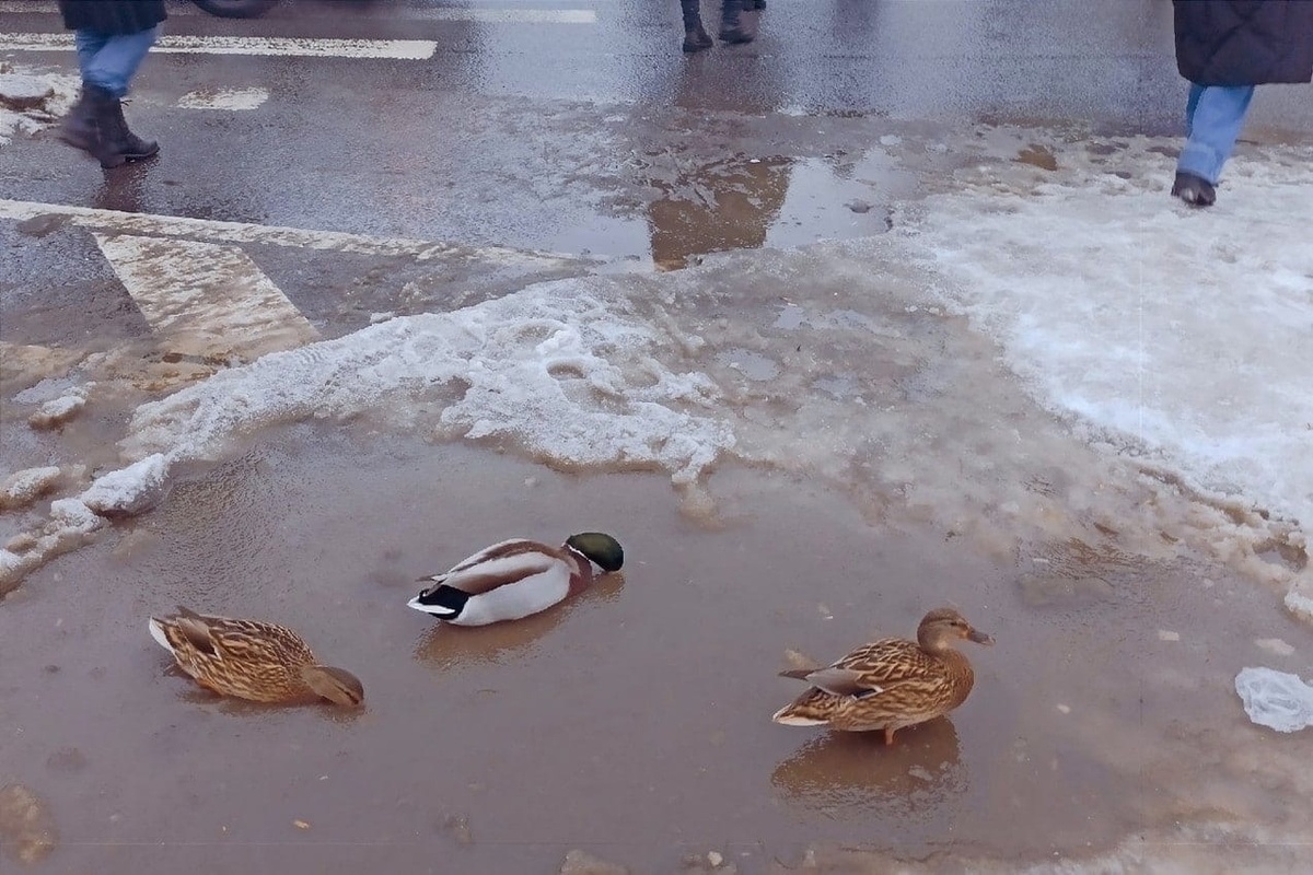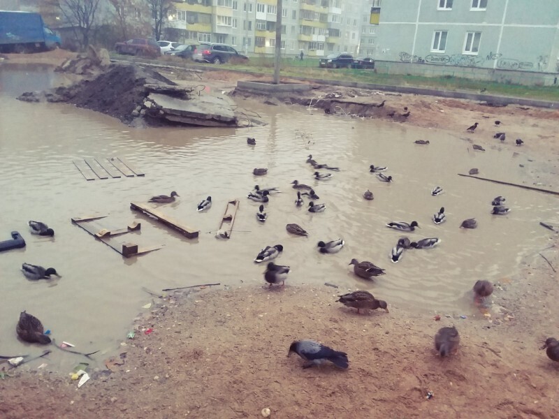 У нас с утра частенько прилетают утки огари, реже кряквы, а иногда даже мандаринки (предположительно все летят из Московского зоопарка). И, оглушительно крякая, делят мусорные контейнеры.
