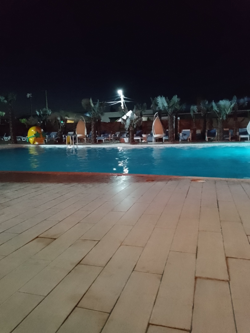 Солнце уже скрылось за горизонтом, уступив место бархатному вечернему небу. Villagio погружался в мягкую полутьму, ожидая своего вечернего преображения. И вот, как по волшебству, бассейны, до этого спокойные и безмятежные, начали сиять. Неоновая подсветка, словно искры, зажглась в воде, превращая их в сверкающие оазисы.
