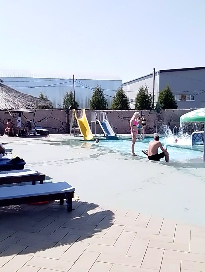 Хочется отметить что в бассейне была теплая вода и очень чистая, что сделало плавание еще более приятным. Солнечные лучи, пробиваясь сквозь прозрачную воду, создавали игру света и теней на дне бассейна. Воздух был наполнен запахом хлорки, но не резким, а свежим, что говорило о тщательной очистке воды. Отдыхающие, расслабленно плавая или нежась на лежаках, наслаждались тихой и спокойной атмосферой. В целом, посещение бассейна оставило только приятные впечатления