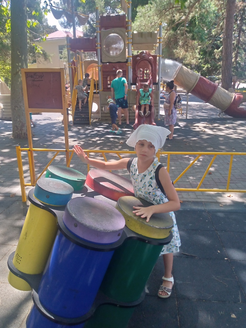 Площадка расположена в тени пицунской сосны, что позволяет комфортно отдыхать вместе с ребёнком даже в самый жаркий день, кроме того пицунская сосна обладает волшебной исцеляющей силой и оздоровительными свойствами.