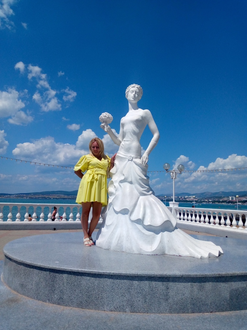 Название Геленджик переводится, как белая невеста! Именно по этой причине в центре Геленджика располагается символ города. Считается, что каждая Незамужняя женщина может выйти замуж после того, как прикоснётся к этой скульптуре. Сразу могу вас разочаровать - это не работает! По крайней мере со мной. Трогала её уже трижды.